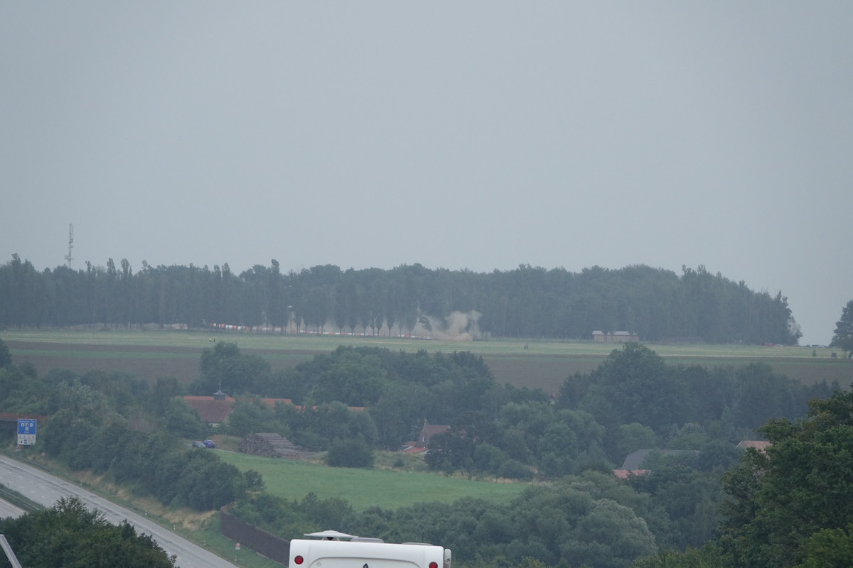 Die geplante Sprengung des Wilsdruffer Funkmastes ist im ersten Anlauf gescheitert. Gegen 9.30 Uhr sollte der Mast fallen. Er widersetzte sich aber der Sprengung.