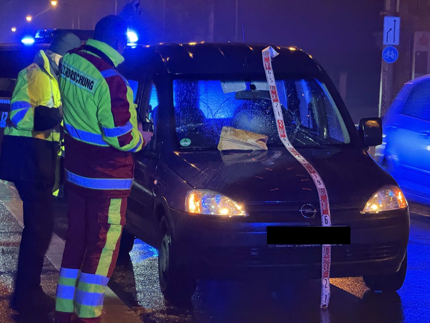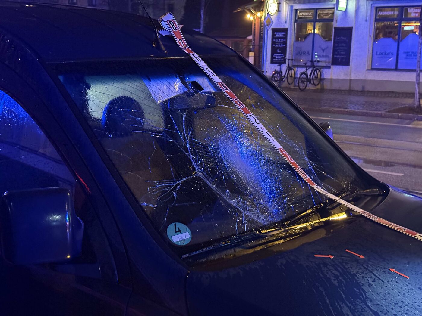 - Durch den Aufprall zersplitterte die Windschutzscheibe des Transporters