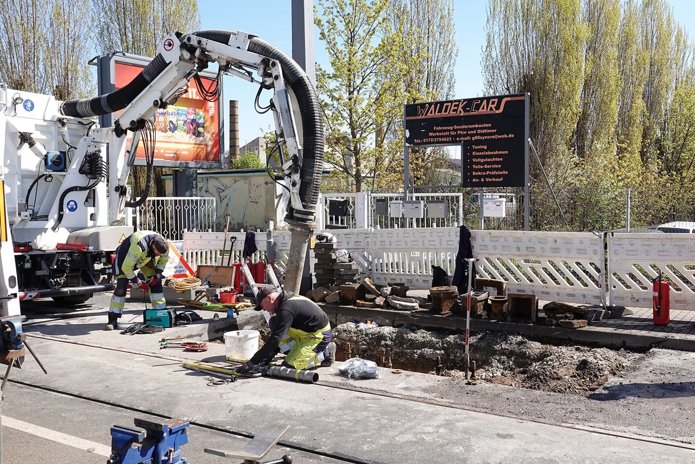 - Bauarbeiter öffneten die Fahrbahn und reparierten den Schaden.