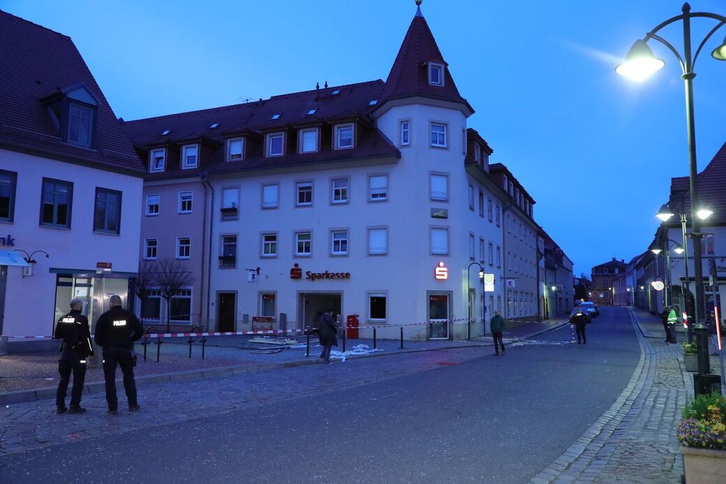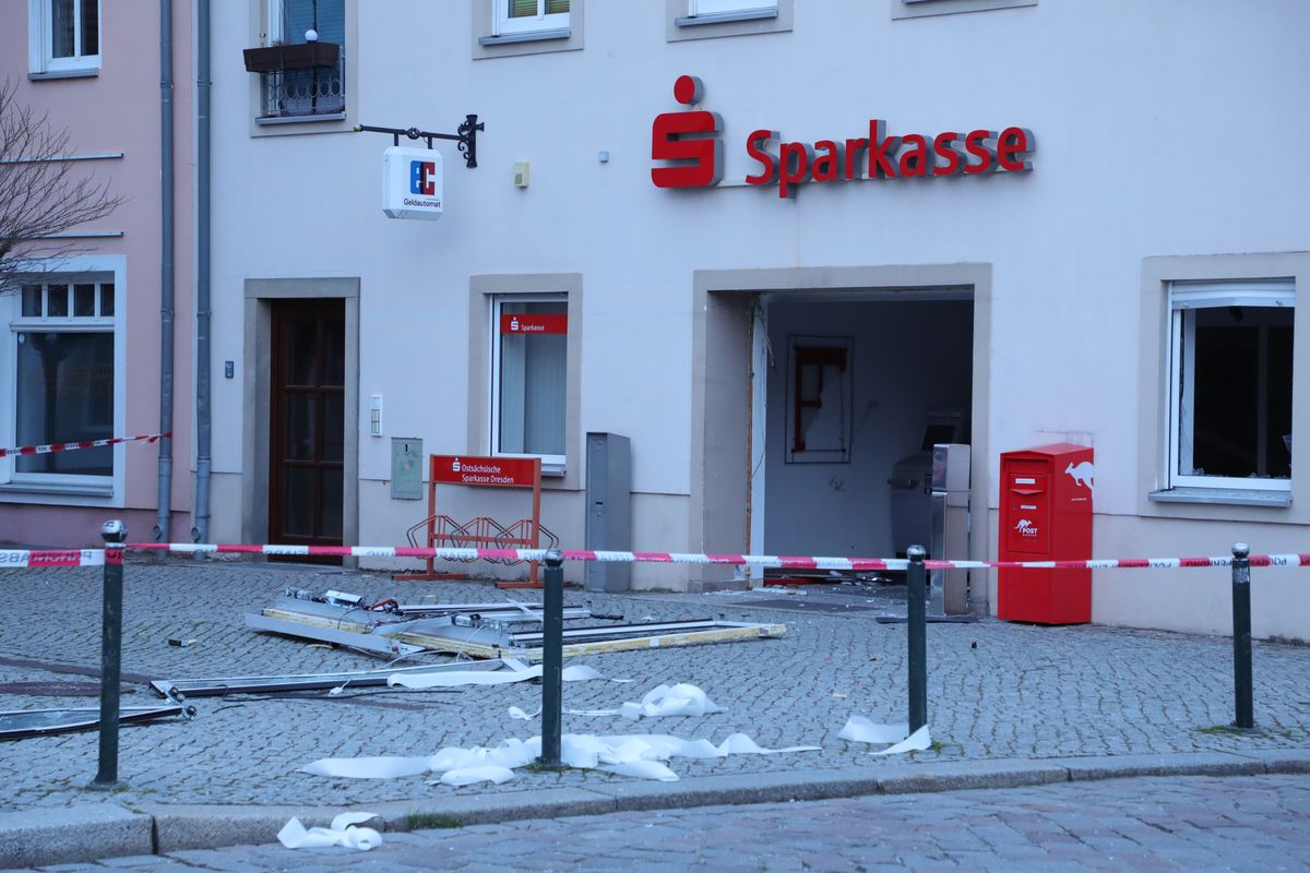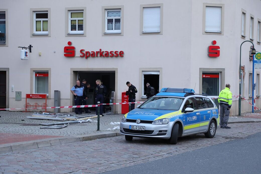 In Wilsdruff ist am frühen Montagmorgen ein Geldautomat gesprengt worden. Als Tatzeit gab die Polizei etwa 4:20 Uhr an. Die Sparkassenfiliale an der Freiberger Straße wurde dabei schwer beschädigt. Die Täter sind geflüchtet, die Polizei fahndet mit Hochdruck nach den Unbekannten.