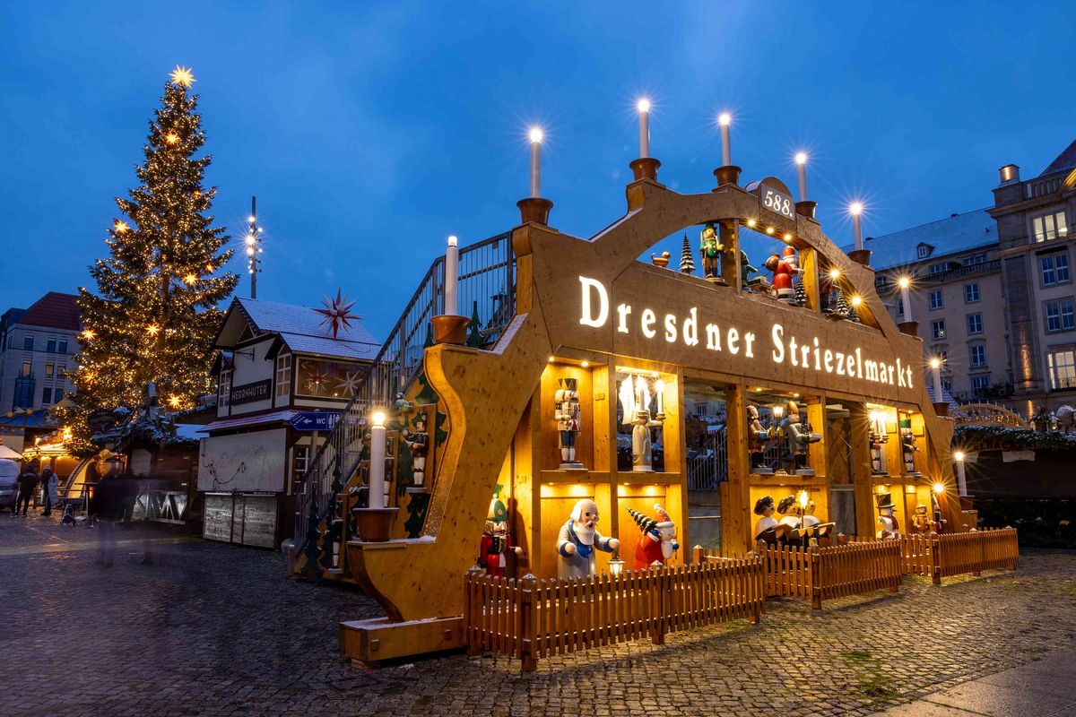 - Auf dem Dresdner Striezelmarkt sind am Freitag wieder die Glühweinstreifen unterwegs.