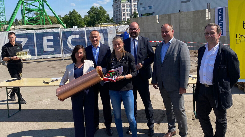 Im Heinz-Steyer-Stadion ist am Donnerstag offiziell der Grundstein für die neue Multifunktionsarena gelegt worden. Gebaut wird aber bereits seit Oktober. Bislang erfolgten nur Abriss und Erdarbeiten. Steintribüne, Tartan-Bahn, Traversen und Rasen wurden zurückgebaut.
