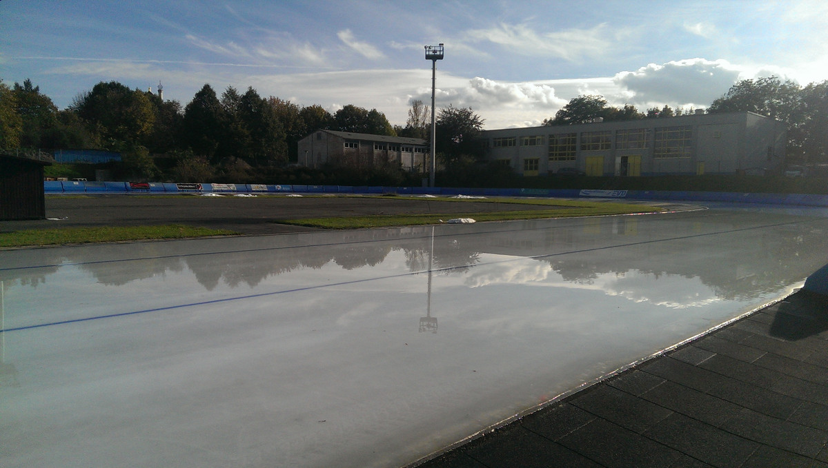 - In der Energieverbund Arena ist am Montag die Kältetechnik ausgefallen - das Eis auf der Außenfläche schmilzt.
