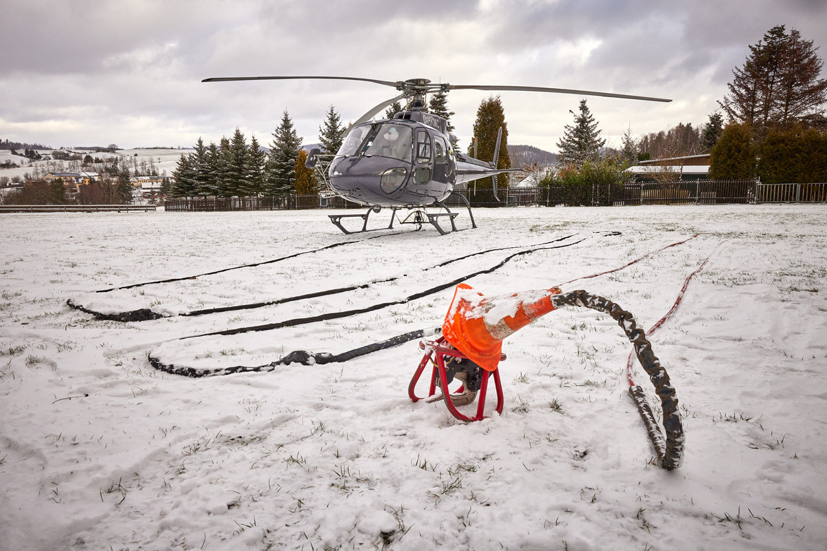 Hubschrauber „Eichhörnchen“ ist laut Ministerium ein AS 350 B3 mit einer Außenlast bis zu 1400 Kilogramm. Mit dem Modell würden die meisten der so genannten Lastenflüge in Deutschland absolviert. Alle anderen technischen Mittel wie ein Seilkran seien wegen der fehlenden Erschließung der Klamm in der Vergangenheit bereits ausgereizt, Handtransport oder Flößen mit dem Kahn zu aufwändig oder zu langwierig. (dpa)