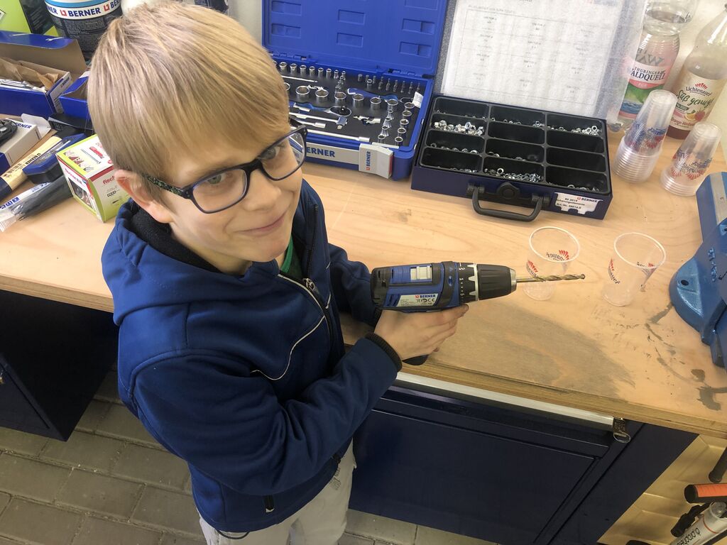 Jetzt so kurz vor der Fahrradsaison konnte aus dem Spendentopf eine Hobbywerkstatt finanziert werden. Nach einer gründlichen Einweisung und Werkzeugkunde ging es für Justin und Jeremy direkt an die Räder der Sonnenblumengruppe.