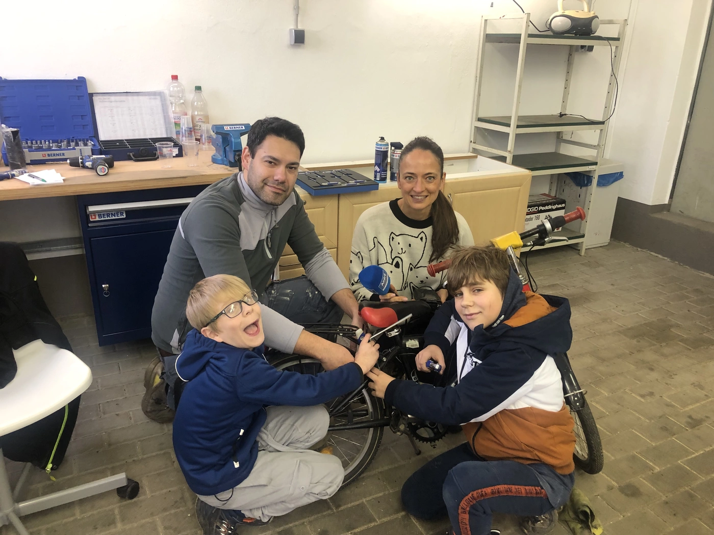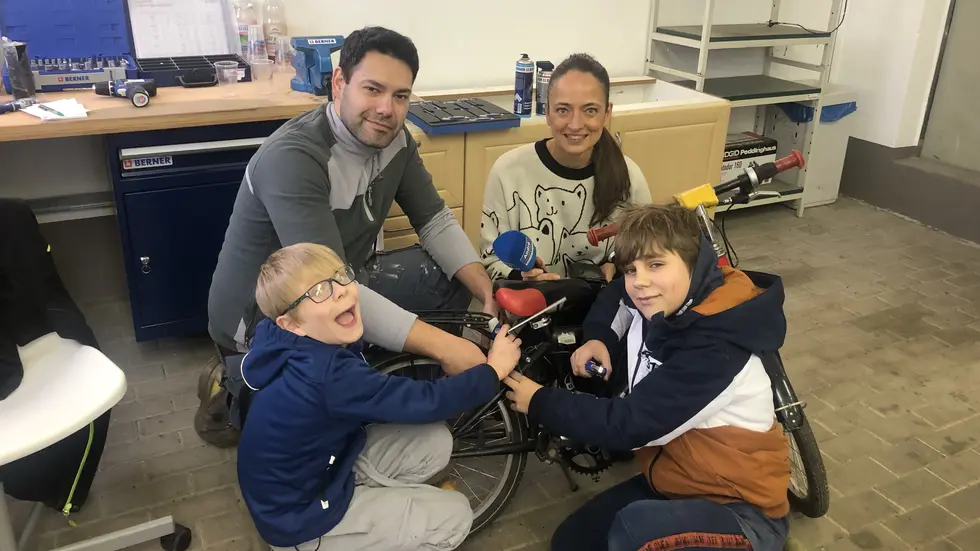 Es gab einiges zu tun für die Jungs: Licht kontrollieren, Reifendruck prüfen und die Kette richten. Einrichtungsleiterin Annett zeigt sich zufrieden: „Nach dem Kurs sind die Kinder immer stolz wie Bolle. Auch der Kontakt zu einer männlichen Bezugsperson ist wichtig, da bei uns in der Einrichtung doch eher Frauen arbeiten.“