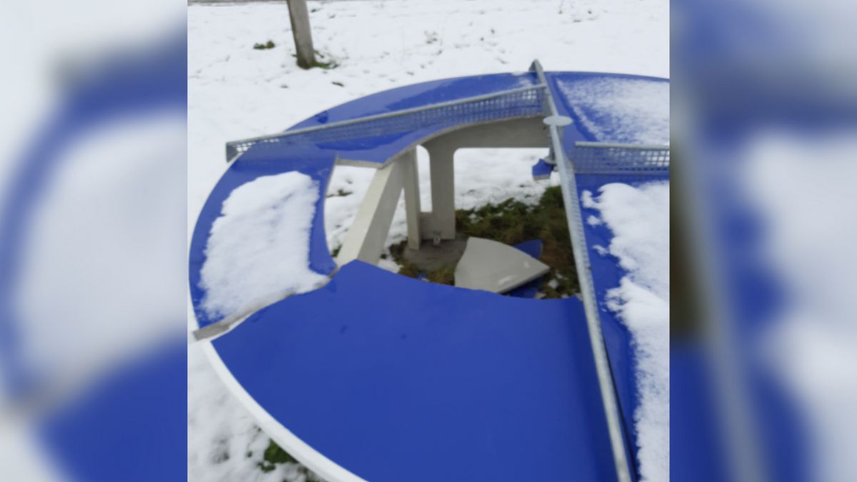 - Die Tischtennisplatte ist Mitte Januar von Unbekannten zerstört worden. Schaden: 6.000 Euro.