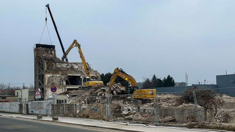 Das Areal war früher ein Umschlagplatz für Chemikalien. Die intensive Nutzung hat den Boden erheblich mit Schadstoffen belastet, deshalb muss der Bauschutt extra behandelt und entsorgt werden. Bis 2027 wird das Gelände komplett saniert, auch eine große Grünfläche soll dabei entstehen.