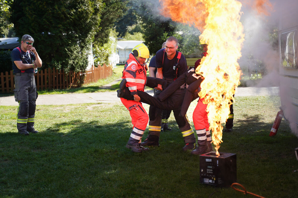 Vier Workshops standen dieses Mal auf dem Programm. Die Freiwillige Feuerwehr Niederau simulierte den Brand eines Wohnwagens. Im Workshop der Bundespolizei ging es um Situationseinschätzung, Selbstschutz und Deeskalation bei Konflikten. Das THW hat einen acht Meter hohen Turm aufgebaut, an dem die Teilnehmer Abseilen, Sicherung und Knotenkunde trainieren konnten. In einem weiteren Workshop ging es um Blackout- Szenarien sowie chemische, biologische und nukleare Gefahren.