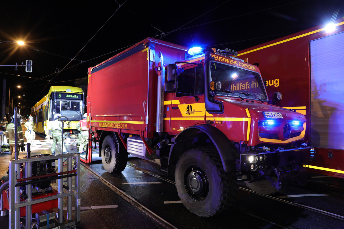 Die Spezialkräfte für Straßenbahnhilfeleistung der Feuerwehr Dresden trainieren mindestens zwei Mal im Jahr das Eingleisen der Dresdner Stadtbahnwagen und sind auf solche Szenarien sehr gut vorbereitet. Hand in Hand mit den Fachleuten der Dresdner Verkehrsbetriebe, welche mit einem speziellen Werkstattwagen vor Ort waren, wurden die Straßenbahnen wieder eingegleist.