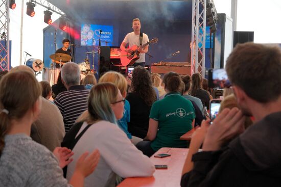 Herz über Kopf am 9. Juli 2022 auf dem Gelände der Herrnhuter Sterne Manufaktur. 18.100,- Euro waren im Rahmen unserer Herzenssache bei der Privatkonzert-Versteigerung zusammengekommen.