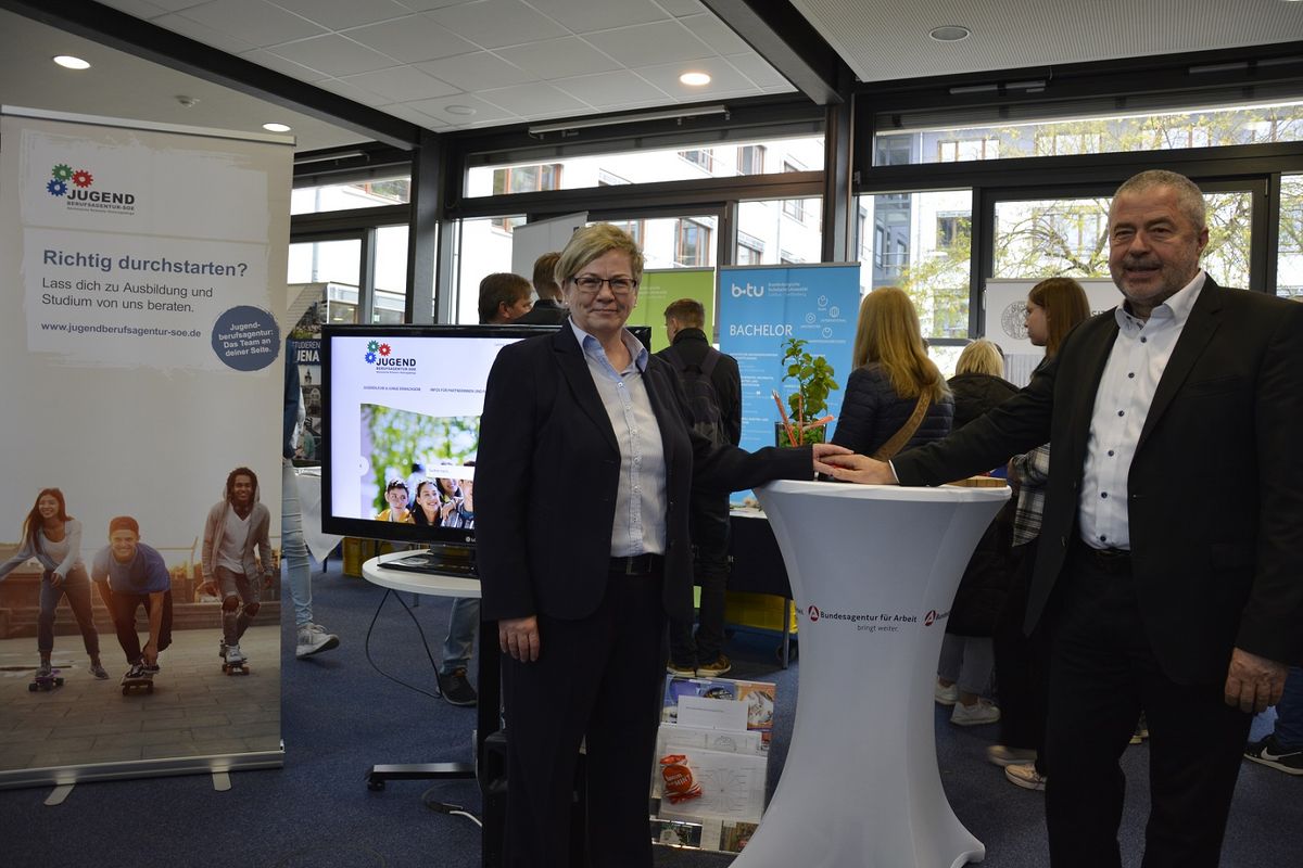 - Landrat Michael Geisler und Arbeitsagenturchefin Gerlinde Hildebrand starteten bei der UniBörse per Knopfdruck die gemeinsame Internetseite