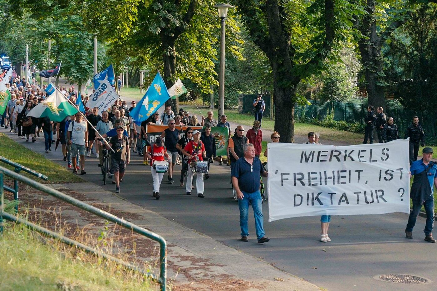 Es gab aber auch Proteste. „Merkels Freiheit ist eine Diktatur“, stand auf Transparenten, die Demonstranten ihr entgegenhielten. Vor dem Museum hatten die rechtsextremen Freien Sachsen zu einer Demo aufgerufen. Unter dem Motto „Freiheit ohne Merkel“ und „Wir haben nichts vergessen“, protestierten Demonstranten gegen den Merkel-Besuch. Auch ein Block jugendlicher Rechtsextremer war vertreten.