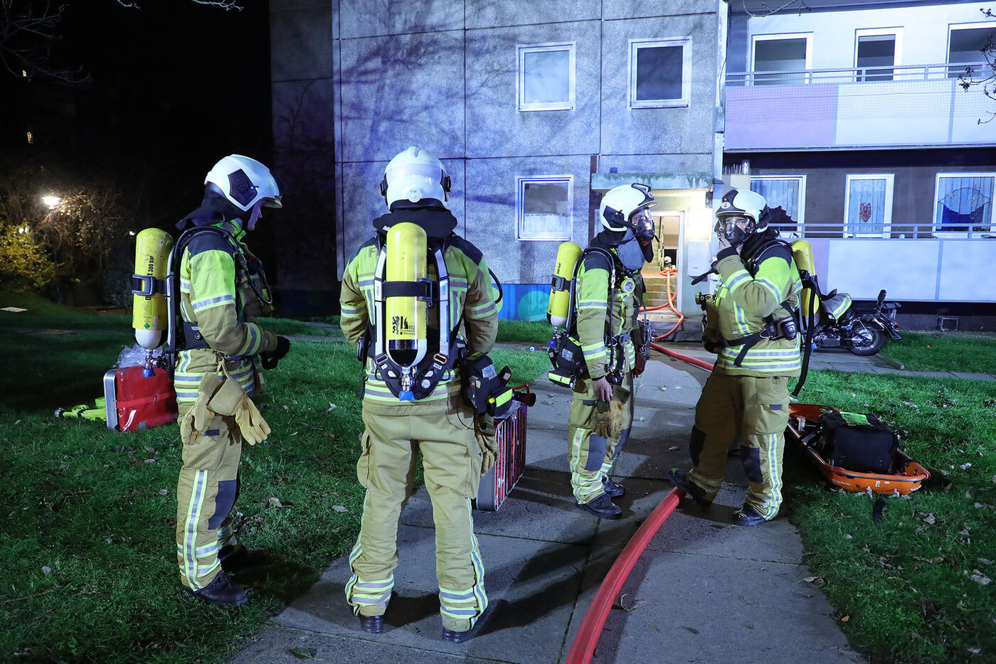 Die Feuerwehr rückte mit Einsatzkräften der Wachen Löbtau und Übigau sowie der Stadtteilfeuerwehr Gorbitz an und löschte den Brand unter Atemschutz. 35 Bewohner konnten das Haus unverletzt verlassen. Ein Bus der Verkehrsbetriebe stand zum Aufwärmen zur Verfügung. Sechs Personen wurden nach Angaben der Feuerwehr vorsorglich auf Rauchgasvergiftung untersucht.