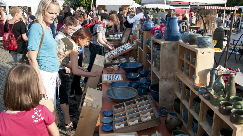 Rund 70 Aussteller sind am Samstag und Sonntag beim Dresdner Keramikmarkt dabei. Rund um den Goldenen Reiter präsentieren die Handwerker und Künstler ihre Arbeiten. Wie jedes Jahr gab es weit mehr Bewerbungen als Standplätze. Die Spanne des Angebotes reicht von zeitgenössischem Schmuck über bedrucktes Steinzeug bis hin zu Gartenkeramik und Skulpturen. Traditionelle Techniken gibt es ebenso wie moderne schlichte Formen und üppige Dekore.