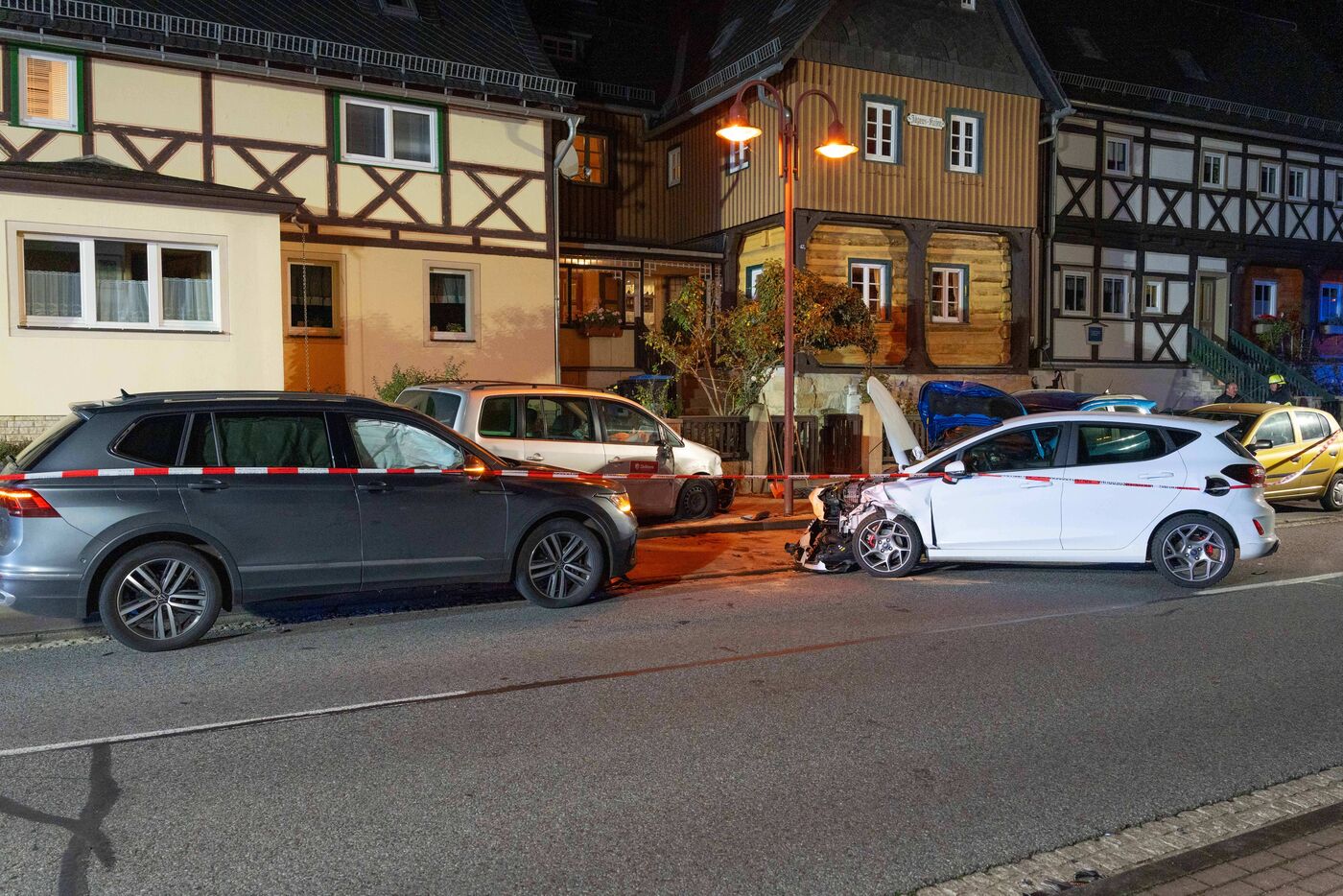 Am späten Montagnachmittag sind auf der B 172 acht Autos bei einem Unfall beschädigt worden. Ein Mann (19) wurde leicht verletzt. Ein 51-Jähriger fuhr nach Angaben der Polizei mit einem VW Tiguan in Richtung Schmilka. Er wollte mehrere Autos überholen und scherte nach links aus. Dabei kam es zum Zusammenstoß mit einem VW Touran (Fahrer 19), der bereits überholte. Der Touran kam anschließend von der Fahrspur ab, kollidierte mit mehreren geparkten Autos und kam an einer Hauswand zum Stehen.