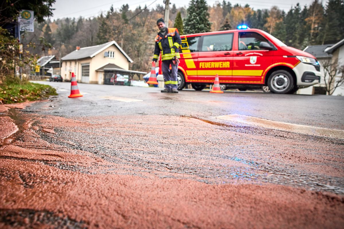 Die Bielatalstraße (S171) wurde deshalb ab Königstein zeitweise in beide Richtungen voll gesperrt. Die Kameraden der freiwilligen Feuerwehren beseitigten mit Ölbindemittel die Spur. Die ölige Flüssigkeit war teilweise über beide Fahrspuren gelaufen. Auch drei Maschinen der Ölspurbeseitigung vom ADAC wurden zur Straßenreinigung eingesetzt.