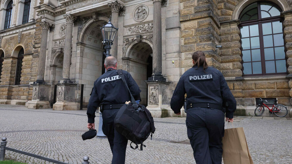 - Die Polizei vor Ort bei der Gemäldegalerie im Dresdner Zwinger.
