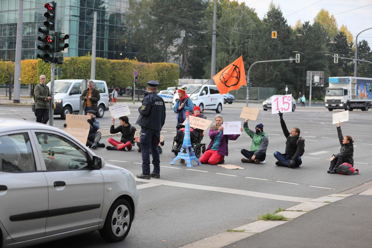 Klimaschützer blockieren wieder Verkehr am Straßburger Platz