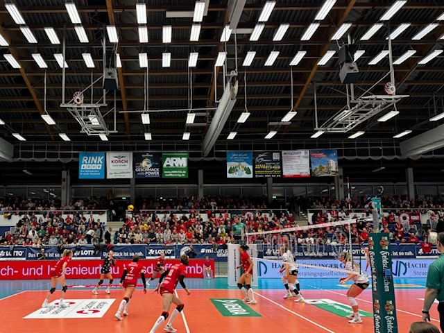 Die Dresdnerinnen diktierten vor 2418 Zuschauern in den ersten beiden Sätzen vor allem durch druckvolles Aufschlagspiel, variable Angriffe und eine stabile Abwehr das Geschehen. Dabei brachte Alexander Waibl erstmals auch wieder Sarah Straube und Grace Frohling aufs Feld, die sich beide vor einigen Wochen einen Bänderriss im Fuß zugezogen hatten.