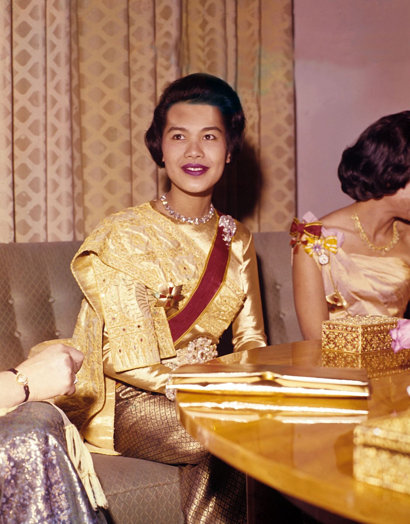 Trotz des Wohnsitzes Bangkok waren die jungen Royals dem europäischen Jetset sehr zugetan: treue Besucher der großen Bälle, ebenso der Festspiele in Salzburg und Bayreuth, sie zudem eine der besten Kundinnen der Pariser Nobelschneider. Beim Staatsbesuch 1960 in Deutschland lag ihr die halbe Bundesrepublik acht Tage lang zu Füßen.