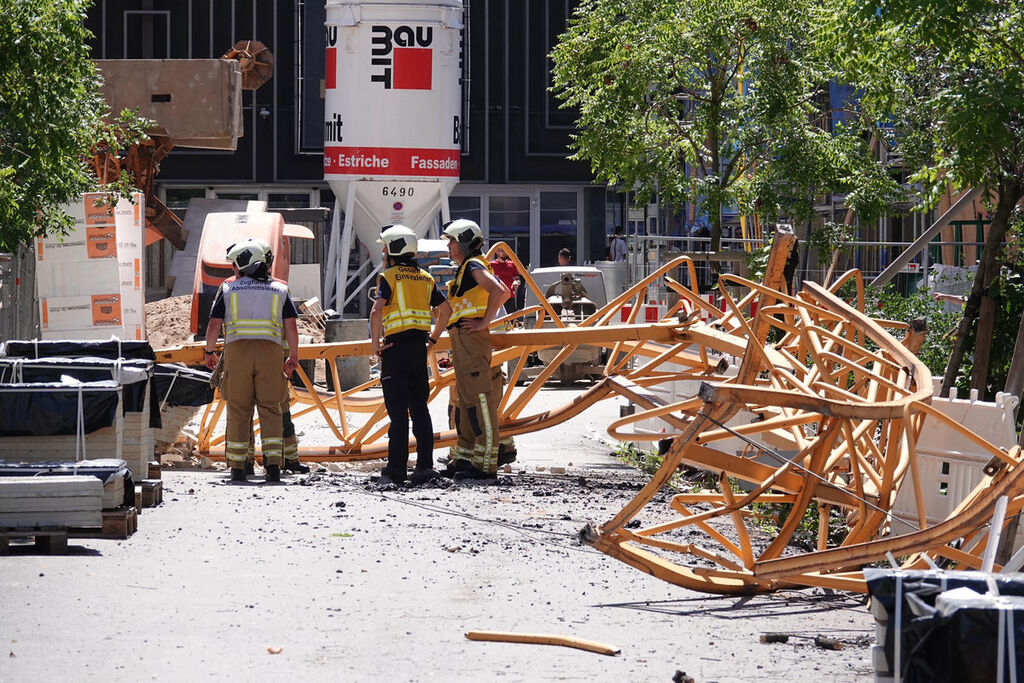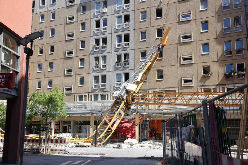 Acht Wohnungen sind aktuell nicht nutzbar. Der Kran habe Wände beschädigt, Scheiben seien zu Bruch gegangen, teilte die Polizei mit. Die Bergung sei schwierig. Einfach wieder aufgerichtet werden könne der Kran nicht. Er müsse demontiert werden.