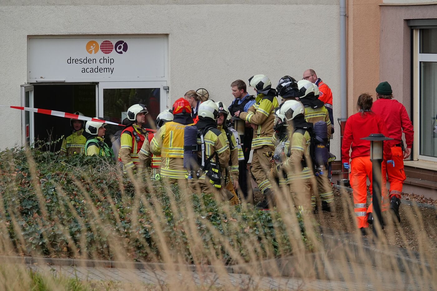 ABC-Alarm in Dresden-Klotzsche. Bei Arbeiten in einem Bildungsinstitut ist ein gefährlicher Stoff ausgetreten. Am Donnerstagmittag rückten 50 Feuerwehrleute an und evakuierten das Gebäude.