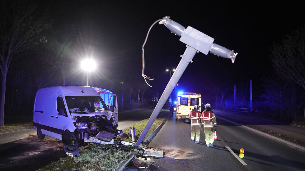 Auf der Dohnaer Straße in Dresden-Prohlis hat am Montagabend ein Mercedes-Sprinter eine Laterne gefällt. Der Fahrer war gegen 22:20 Uhr in Richtung Heidenau nach links von der Fahrbahn geraten und Höhe Gleisschleife gegen den Lichtmast gekracht. Der kippte in der Folge um. Der 46-jährige Deutsche wurde bei dem Unfall leicht verletzt. Er hatte nach Angaben der Polizei über 1,6 Promille intus. Am Sprinter entstand Totalschaden. Die Dohnaer Straße wurde stadtauswärts gesperrt. Die Buslinie 66 mußte umgeleitet werden.