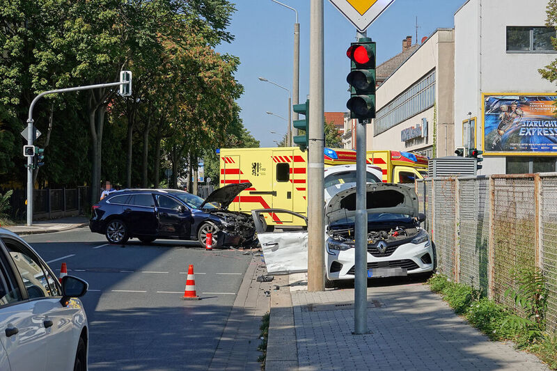 Bei einem Unfall in Dresden-Leuben sind am Sonntagmittag fünf Personen verletzt worden. Den Informationen unseres Reporters zufolge war ein Renault auf der Straße des 17. Juni unterwegs, als er an der Kreuzung Reisstraße mit einem Mazda zusammenstieß.