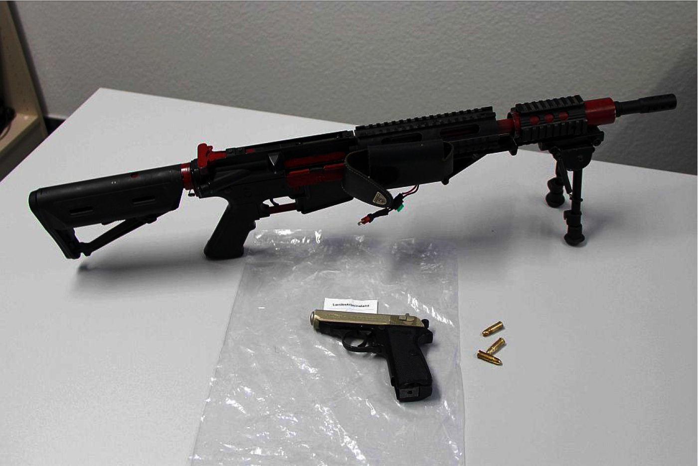 Die weiteren Ermittlungen wegen des Verdachts eines Verstoßes gegen das Waffengesetz werden bei der Soko Rex geführt.