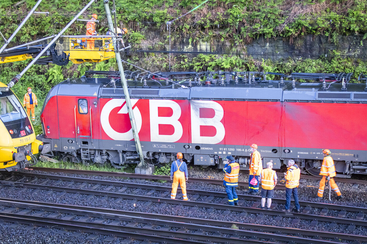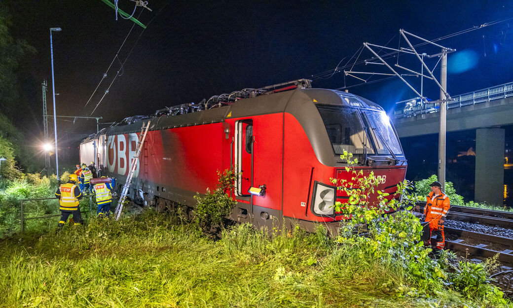 Bei Bad Schandau ist am Donnerstag eine Lok der Österreichischen Bundesbahnen ÖBB entgleist Gegen 17.10 Uhr waren zwei angekoppelte Loks vom Typ Siemens Vectron der ÖBB auf ein Abstellgleis gefahren. Aus bisher unbekannter Ursache fuhr eine der beiden Loks gegen einen Prellbock. 16 Meter rollten die Loks noch ehe sie anhielten. Eine Lok entgleiste dabei, das Drehgestell landete im Dreck.