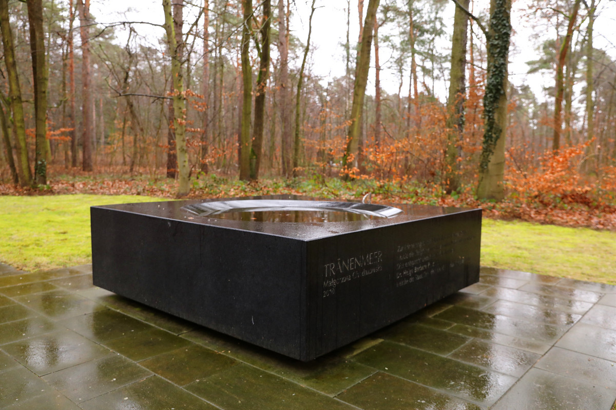 Die Bronze-Skulptur "Trauerndes Mädchen am Tränenmeer" steht seit 2010 neben der Friedhofshalle vor einer großen schwarzen Marmorschale mit Blick auf den Ehrenhain. Sie wurde von der durch die in Dresden lebende polnische Künstlerin Ma³gorzata Chodakowska geschaffen und dient zur Erinnerung an die Opfer des 13. und 14. Februar 1945.