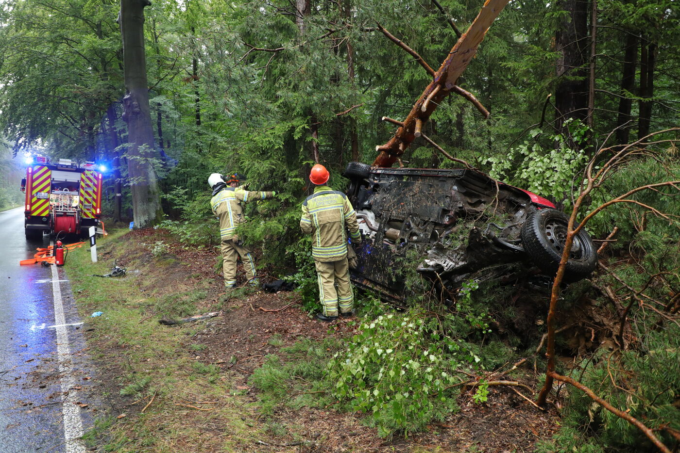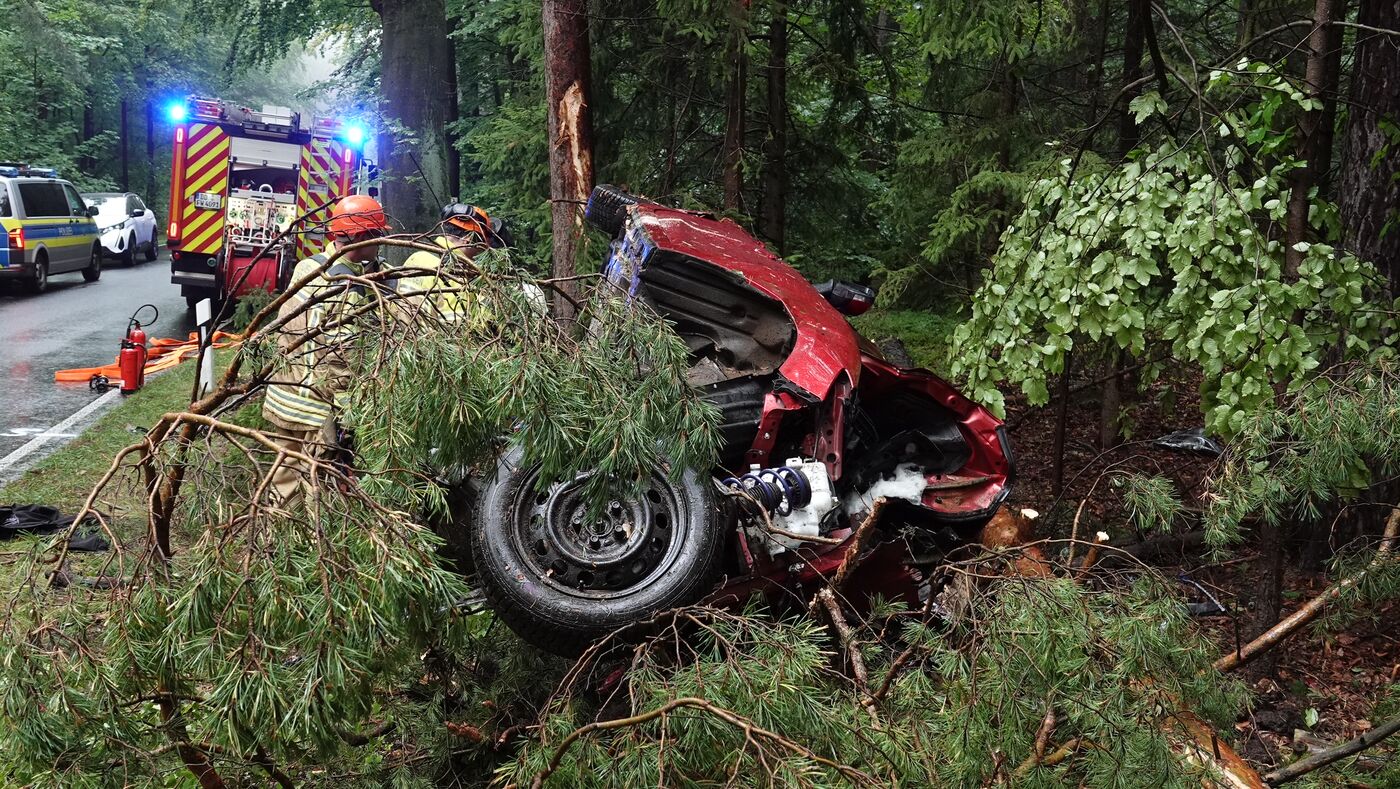 - Der Mazda landete im Wald - er wurde völlig zerstört.