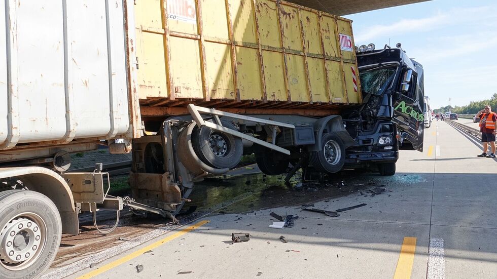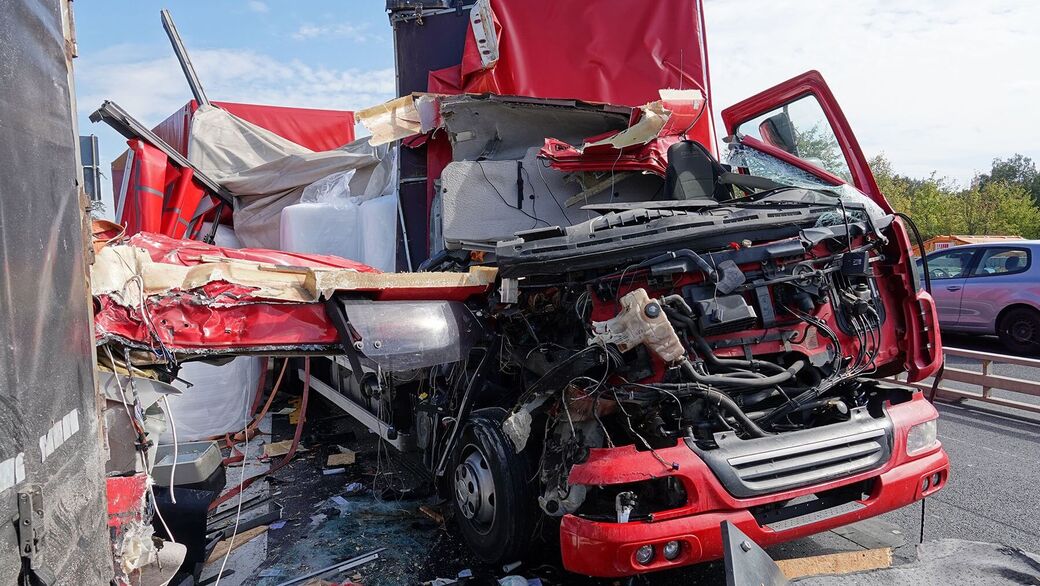 Kurze Zeit später prallten am Stauende wieder zwei LKW aufeinander. In Höhe Wilsdruff fuhr ein polnisches LKW-Gespann MAN auf einen Sattelzug auf. Das Fahrerhaus des MAN wurde durch den Aufprall völlig zerstört. Auch hier blieb der Trucker unverletzt.