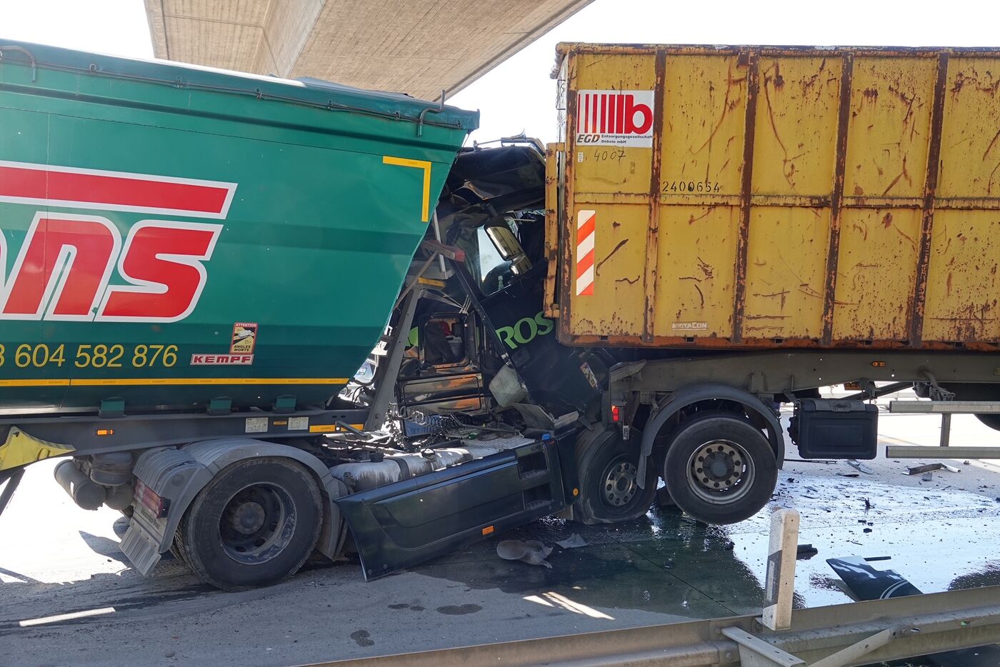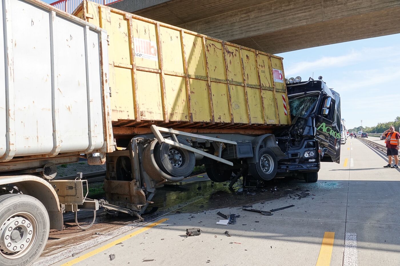 Kurze Zeit später prallten am Stauende wieder zwei LKW aufeinander. In Höhe Wilsdruff fuhr ein polnisches LKW-Gespann MAN auf einen Sattelzug auf. Das Fahrerhaus des MAN wurde durch den Aufprall völlig zerstört. Auch hier blieb der Trucker unverletzt.