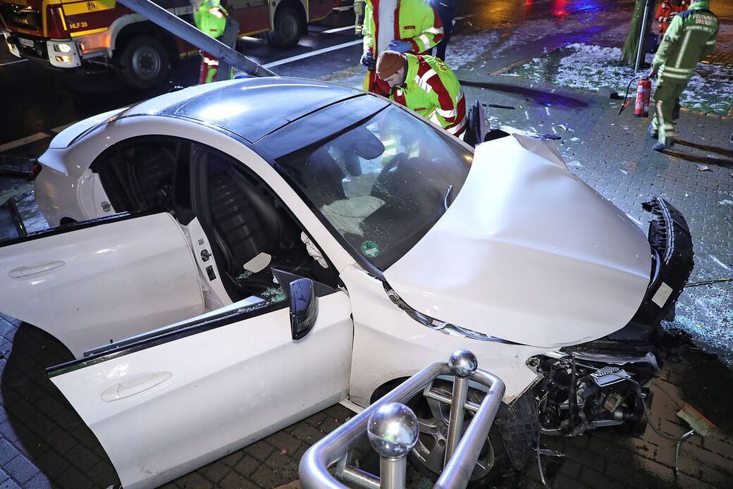 Eine Verfolgungsfahrt mit der Polizei endete am Sonntagabend in Löbtau mit einem schweren Unfall. Ein weißes Mercedes-Coupé mit hessischem Kennzeichen donnerte gegen 22 Uhr gegen eine Straßenlaterne und die Hauswand eines Computergeschäfts an der Tharandter Straße. Wie uns ein Polizeisprecher sagte, war der 49 Jahre alte Fahrer bei Rot über eine Kreuzung gefahren. Eine Polizeistreife wollte ihn deshalb kontrollieren. Doch der Fahrer trat aufs Gaspedal.