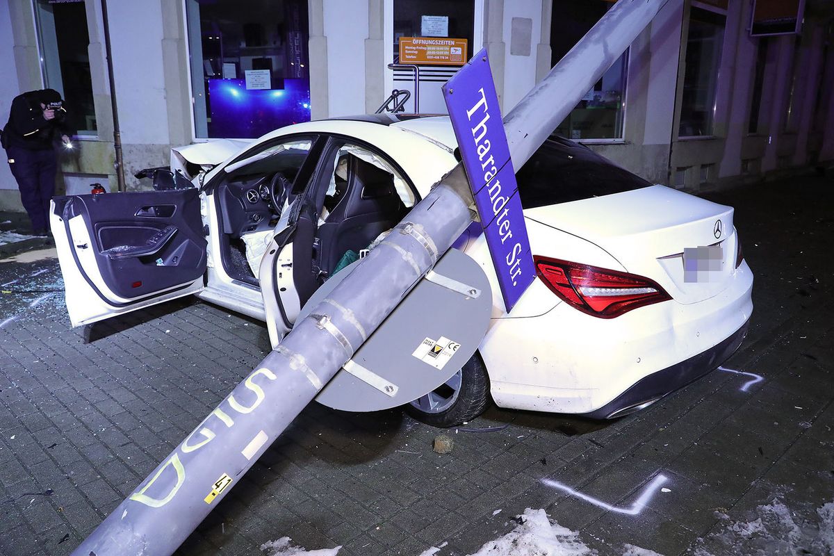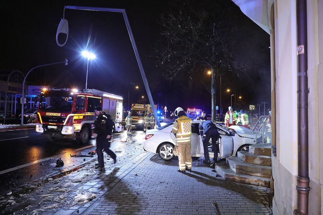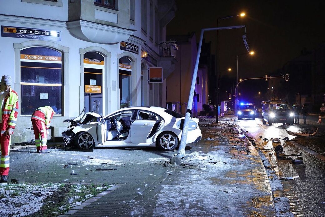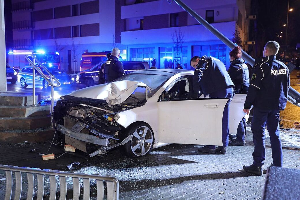 Mercedes kracht nach Verfolgungsfahrt gegen Hauswand