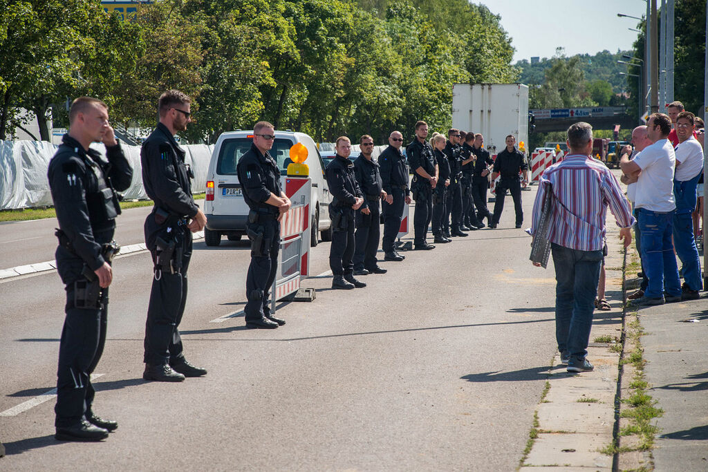 Bundeskanzlerin Angela Merkel hat am Mittwochmittag die Notunterkunft in Heidenau besucht. Sie dankte den Helfern, die Hass ertragen müssen, dankte Heidenaus Bürgermeister Jürgen Opitz. Zudem verurteilte sie erneut die Ausschreitungen vom Wochenende. "Es ist beschämend und abstoßend, was wir erleben mussten", sagte Merkel. Merkel-Besuch von Buh-Rufen und Hupkonzerten begleitetMerkel landete kurz vor 12.00 Uhr auf dem Flugplatz Pirna-Pratzschwitz. Anschließend wurde sie von Ministerpräsident Tillich am Eingang des ehemaligen Baumarktes empfangen. Der leerstehende Baumarkt war kurzfristig in eine Notunterkunft für bis zu 600 Flüchtlinge umgebaut worden. Tillich hatte vor Ankunft der Kanzlerin hitzige Debatten mit Gegnern der Asylunterkunft. Merkel wurde dann bei ihrer Ankunft kurz nach 12.00 Uhr vor Ort mit Buh-Rufen und Pfiffen empfangen, vorbeifahrende Autos hupten.Anschließend begann ein Rundgang der Kanzlerin in dem ehemaligen Praktiker-Baumarkt. Dabei ist sie mit Flüchtlingen und Helferns ins Gespräch gekommen.Gegenüber des Marktes sammelten sich am Mittag immer mehr Menschen, sie skandierten "Volksverräter", "Lügenpresse" und "Hier ist das Pack". Zudem gab es einen Eierwurf. Sigmar Gabriel hatte die Gewalttäter vom Wochenende als "Pack" bezeichnet. Bei den rechtsextremen Ausschreitungen Freitag- und Samstagnacht waren über 30 Polizisten verletzt worden.Am Nachmittag war Merkel in Glashütte, dort hat sie ein neues Produktionsgebäude bei der Lange Uhren GmbH eingeweiht. "Einen größeren Kontrast erlebe ich selten", sagte Merkel.Bündnis Dresden Nazifrei kündigt Demo anDas Bündnis Dresden Nazifrei plant am Freitag und Samstag große Kundgebungen gegen Fremdenhass. Am Freitag solle es vor der Notunterkunft für Flüchtlinge in Heidenau ein Willkommensfest geben, am Samstag in Dresden eine Demonstration, teilte das Bündnis am Mittwoch mit. "Die Ausschreitungen des vergangenen Wochenendes in Heidenau markieren einen neuen Tiefpunkt der sächsischen Verhältnisse", hieß es. Schon seit Wochen gebe es fast täglich gewalttätige Übergriffe und Aktionen von Rassisten und Neonazis gegen Flüchtlinge und Menschen, die sich für deren Wohlergehen engagieren.(Redaktioneller Hinweis: Dieser Artikel wird laufend aktualisiert.)