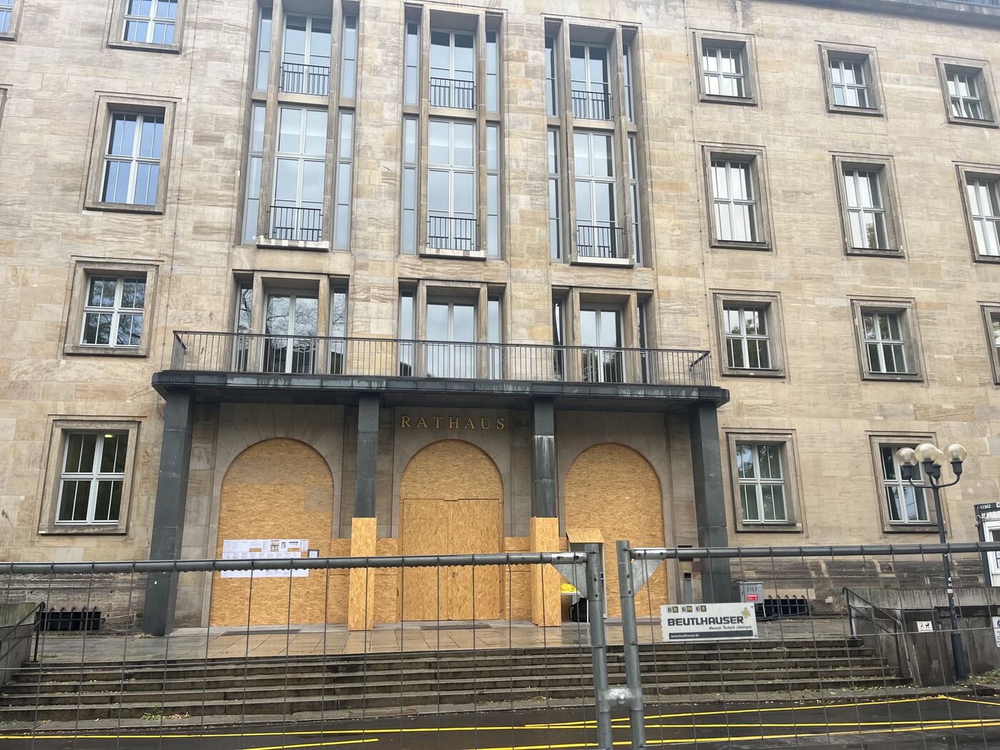 - Der Eingang des Rathauses ist vernagelt, bleibt jetzt für Jahre dicht