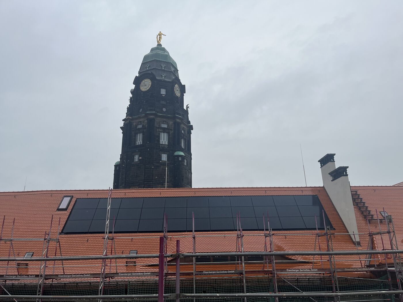 Worum viele private Häuslebauer kämpfen, machten die Stadt an ihrem eigenen Prestige-Objekt möglich. Auf den Dachflächen der Innenhöfe werden ingesamt 625 Photovoltaikmodule installiert, die in Zukunft rund 20 Prozent des Stromverbrauchs des Rathaus decken sollen.Die Anlage hat eine Leistung von 275 kWp und soll bis Anfang November 2025 ans Netz gehen.