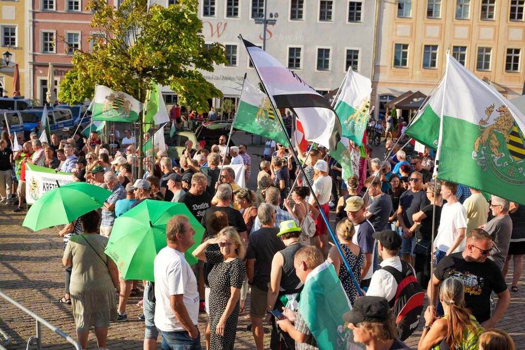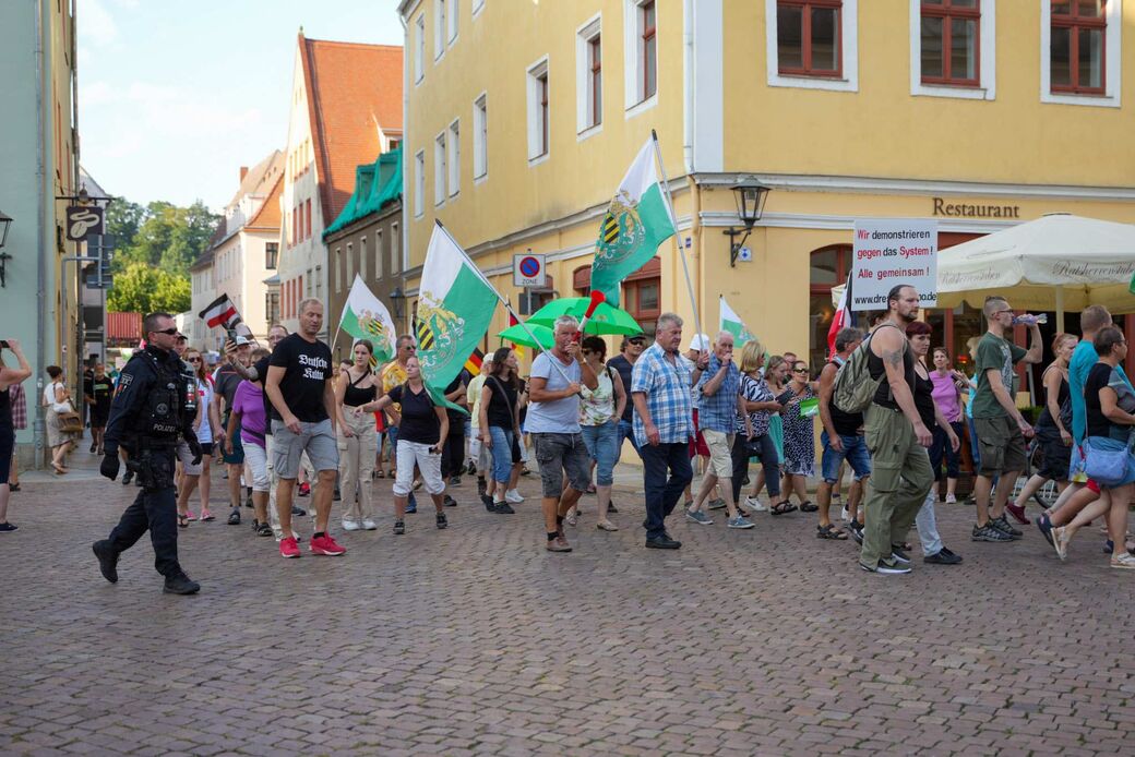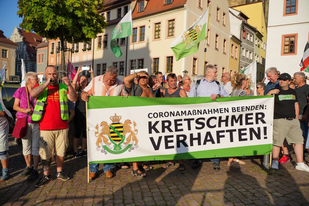 Demonstranten der Splitterpartei „Freie Sachsen“ haben aus nur fünfzig Meter Entfernung Sprechchöre wie „Kretschmer muss weg!“ gebrüllt. Der Ministerpräsident ließ sich nicht aus der Ruhe bringen und sprach gut eineinhalb Stunden mit Menschen in der Stadt. In einer Demokratie sei es wichtig, sich zuzuhören und für Probleme einen Konsens zu finden, sagte er. Leider seien einige dazu nicht bereit.