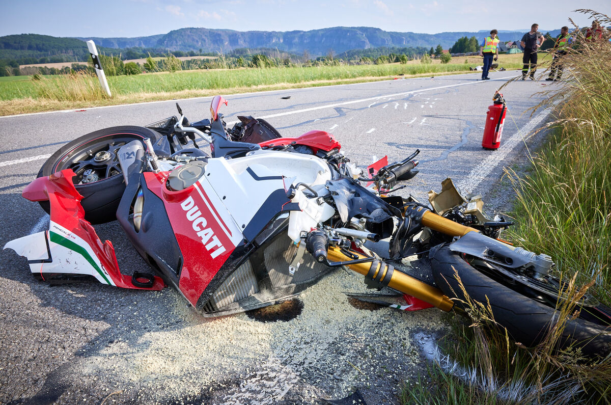 Ein drittes Motorrad, welches der Ducati folgte, konnte laut Polizei noch rechtzeitig vor der Unfallstelle stoppen. Dabei wurde das Motorrad aber beschädigt.