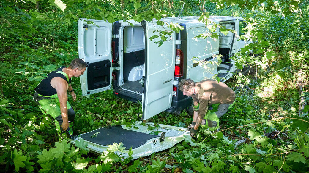 - Der Wagen kam erst im Wald zum Stillstand.