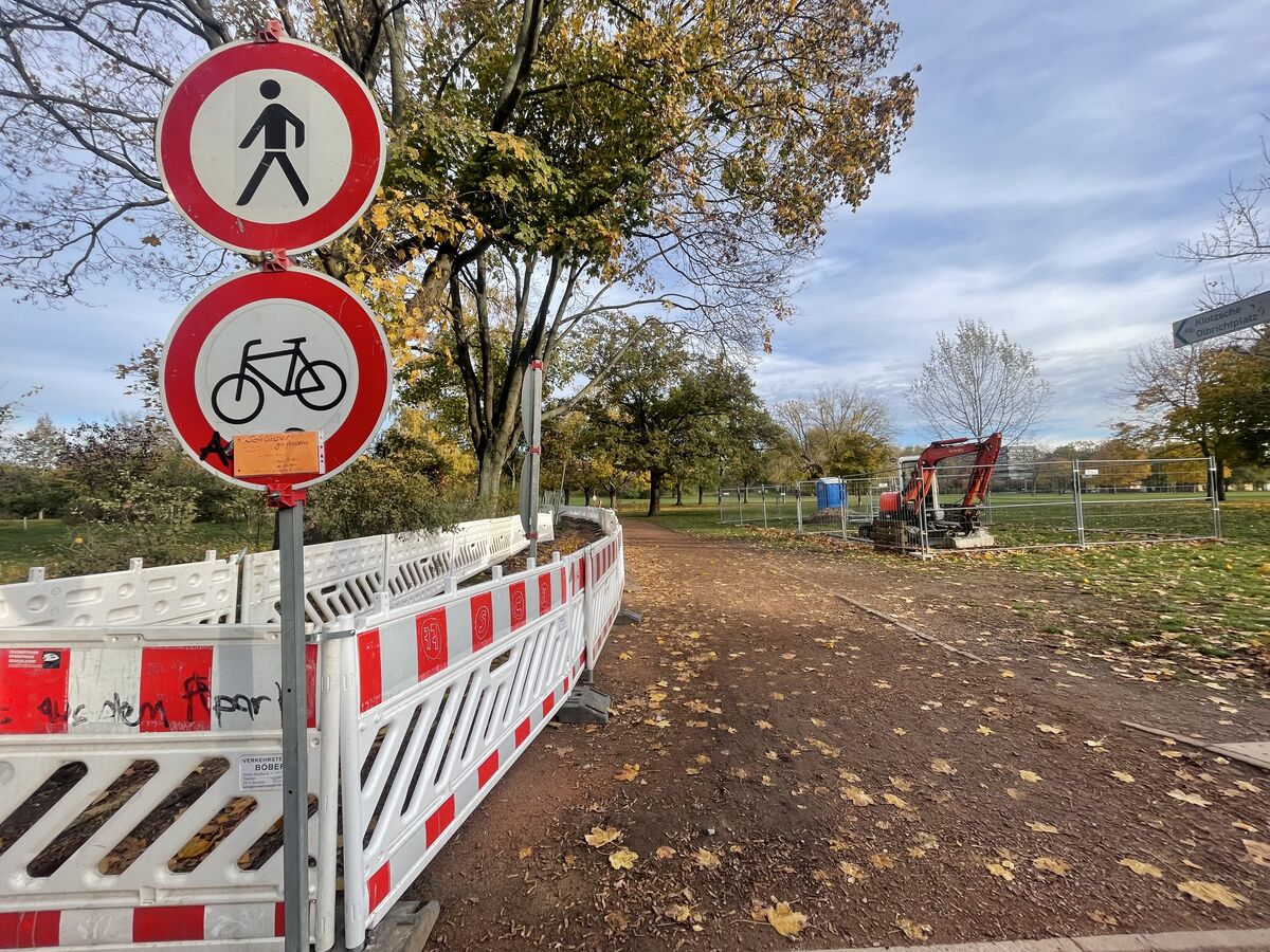 Im Dresdner Alaunpark gibt es künftig mehr Licht. Die Stadt baut derzeit auf dem Gehweg im Park zwischen Alaun- und Tannenstraße. Dort wird der Weg aufgerissen, um die Leitungen für die neuen Leuchten zu legen.