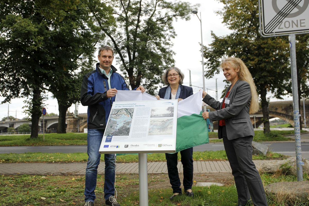 - Der Hochwasserlehrpfad wurde durch Vertreter des Umweltministeriums, der Landestalsperrenverwaltung und der Landeshauptstadt Dresden eingeweiht.