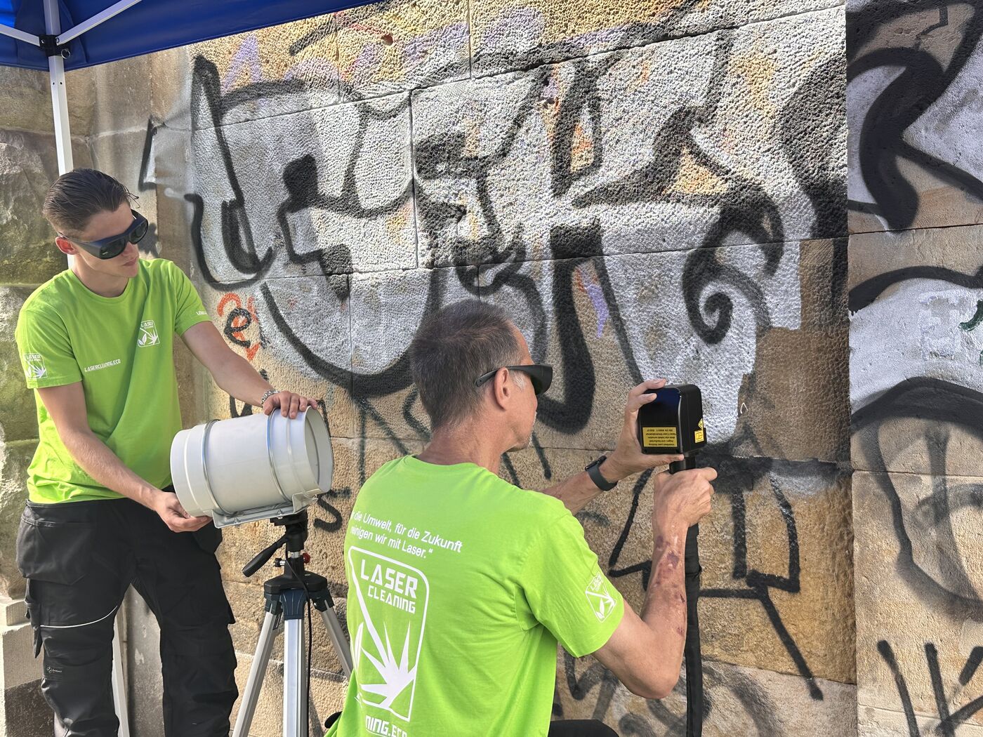 - Mitarbeiter von lasercleaning.eco zeigen die Lasermethode