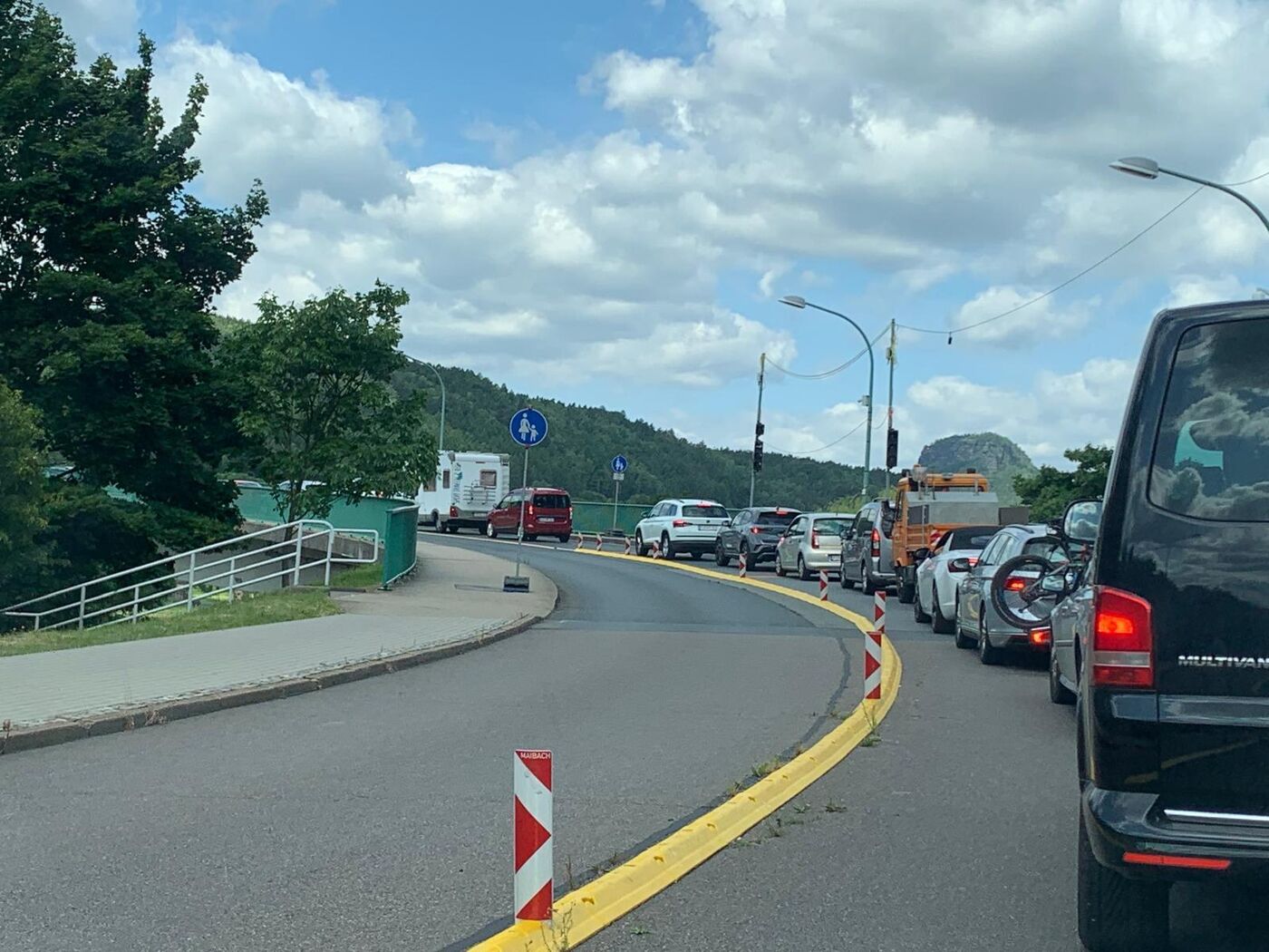- Bereits in diesem Sommer gabs wegen der Baustoffprüfung eine Ampelregelung vor der Elbbrücke in Bad Schandau