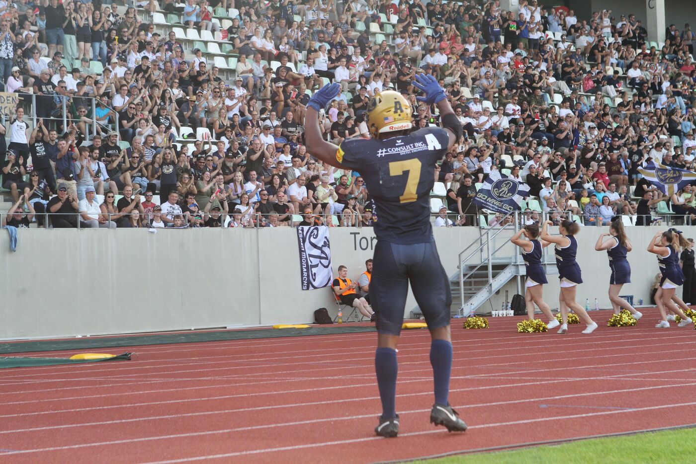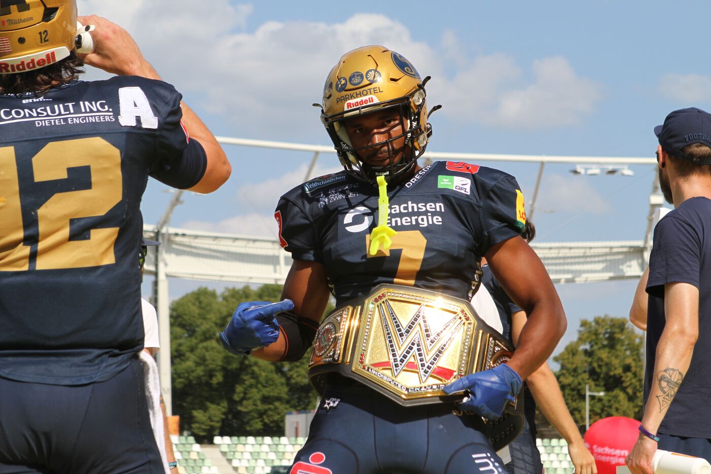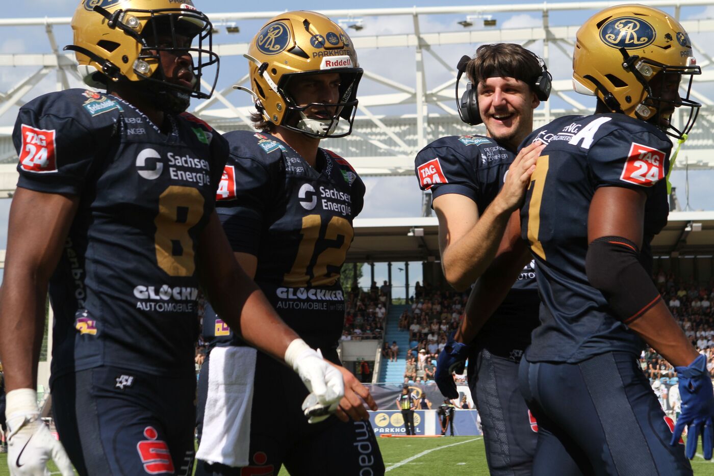 Die Dresden Monarchs bleiben in der German Football League weiter ungeschlagen. Das Spiel gegen die Schwäbisch Hall Unicorns (Sonntag, 10.08.25) endete 48:21 für die Monarchs. Das Spiel ist der neunte Sieg in Folge. Exakt 7051 Fans feierten ihre Mannschaft im Heinzfield.