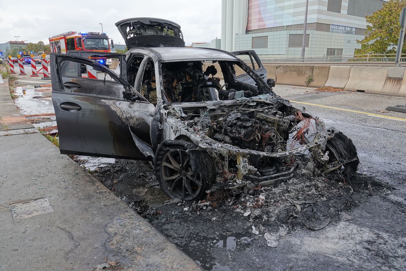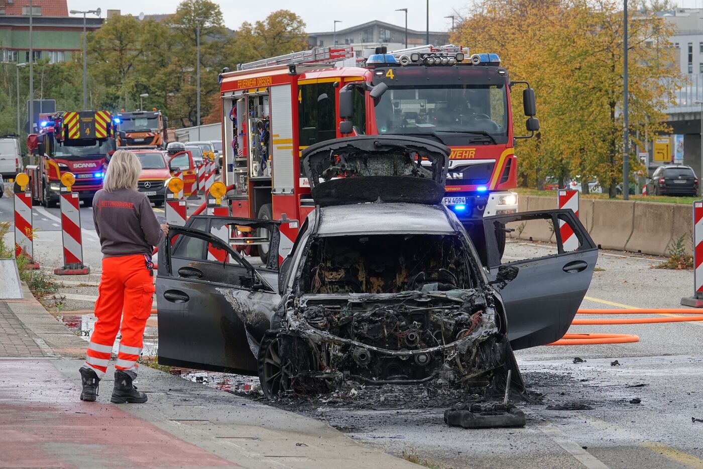 Schrecksekunde für einen Autofahrer auf der Nossener Brücke in Dresden. Während der Fahrt fing sein BMW plötzlich Feuer!