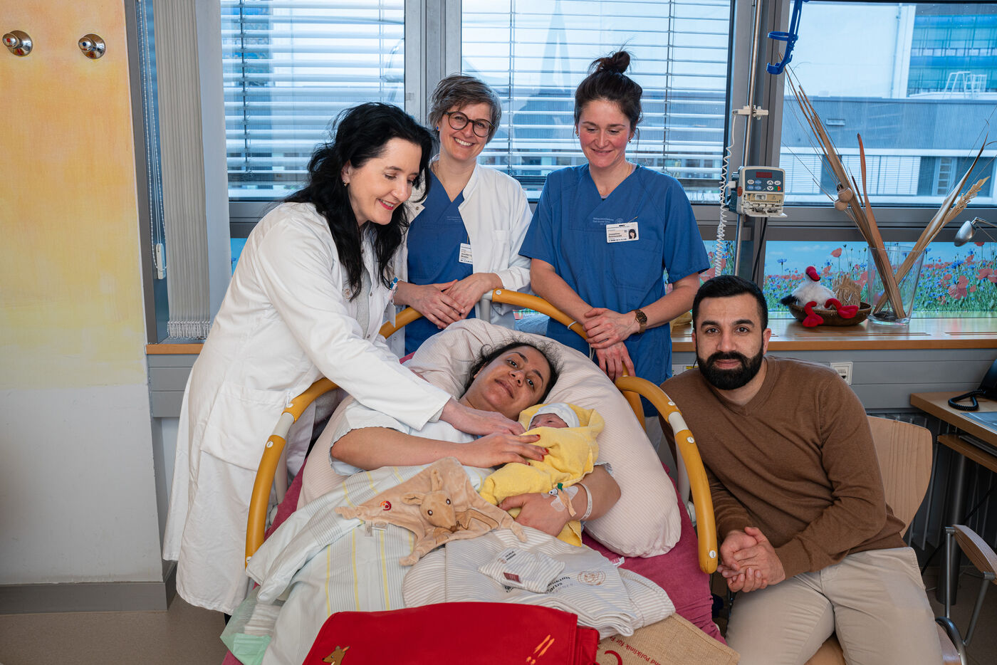 - Esra und Remzi (r.) freuen sich über ihre Tochter Esma, die am 29. Februar geboren wurde. Gratulationen gab es von Klinikdirektorin Prof. Pauline Wimberger (l.) und dem Team aus Pflegenden und Hebammen.